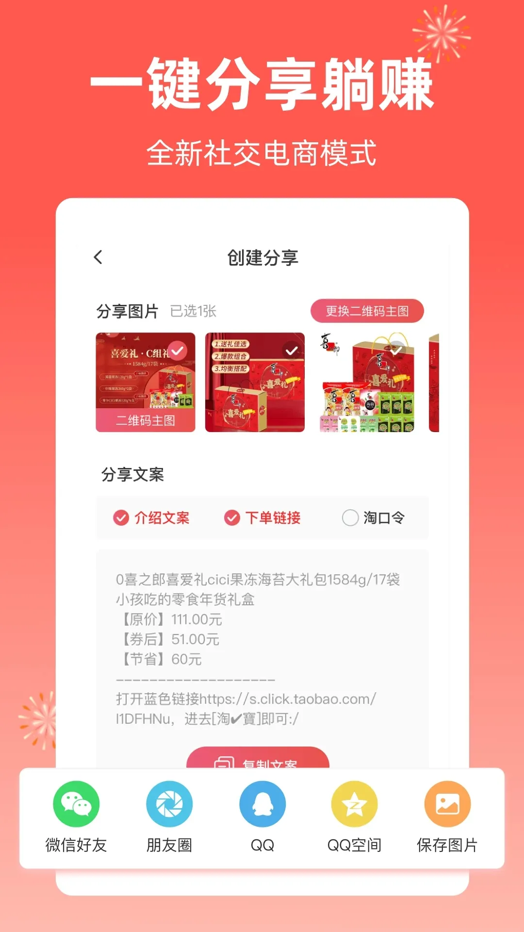 3分享能赚钱:用户可将商品信息分享给好友,好友购买后自己能赚取收入,在家就能轻松赚钱。