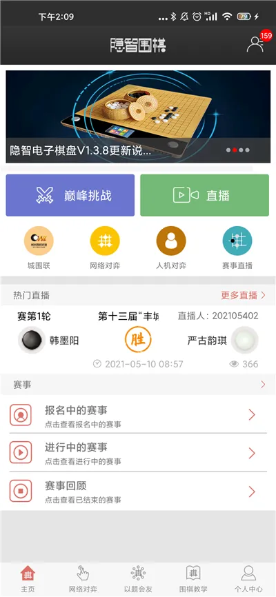 4 赛事功能创新:首创移动赛事编排,可在手机上完成赛事创建、报名、编排和对弈比赛,还支持赛事直播与回放 。