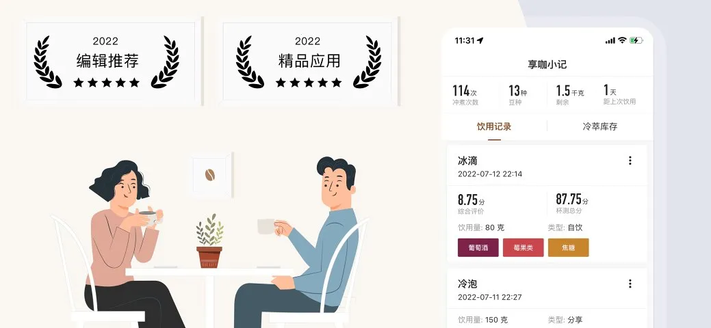 享咖小记是一款咖啡记录助手,能系统记录咖啡冲煮过程,依据SCAA标准进行11维度品鉴。它有风味轮、感官词典等特色功能,还涵盖磨豆机、冲煮器具管理及统计等功能,助您改善咖啡风味,喝得明白 。
