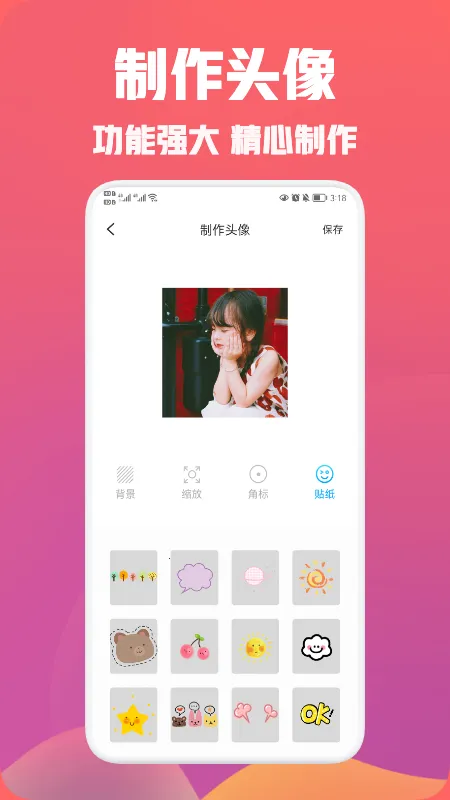 2、自定义强:提供多种编辑工具,能自由创作个性化头像,还可给头像加边框、贴纸、文字,制作专属头像,也能对手机图标等进行自定义。