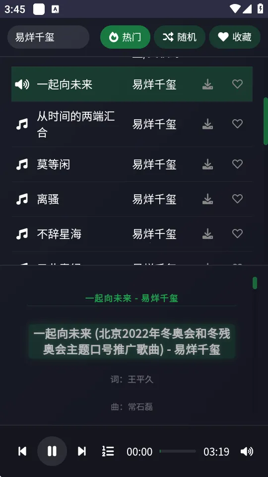 4、离线畅听:支持离线播放,可提前下载音乐,在无网络时也能随时收听,方便又实用。