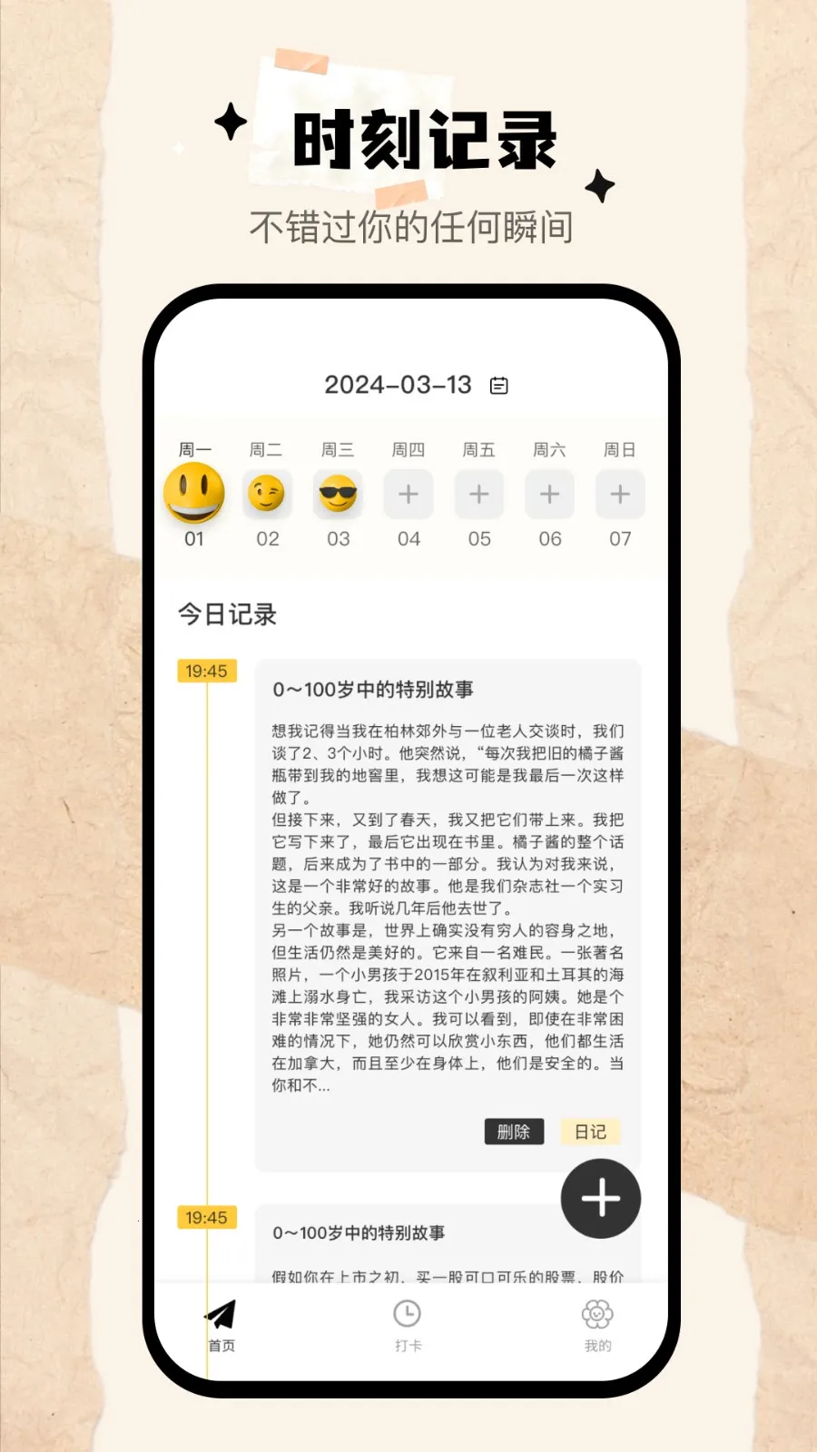 <3>**记录生动**:小小日记模块兼具手账属性,支持图文结合,让记录过程自由且有温度,记录更生动。