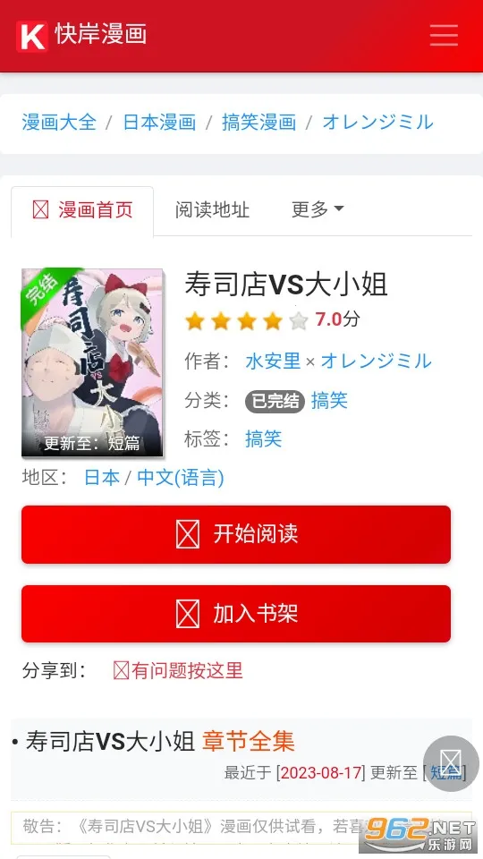 快岸漫画是一款漫画资源丰富的应用。这里涵盖海量漫画,范围广泛、分类详细,无论是热门的《夏日重现》《鬼灭之刃》,还是小众作品都有。其漫画资源全部授权,无盗版。系统会智能排行热门人气漫画,追漫不用等。用户能随时在线搜索感兴趣的漫画,还支持离线缓存,省时省流量。漫画分类齐全,能依据喜好筛选。另外,在阅读时可发表评论,与作者交流,结交志同道合的朋友,享受舒心阅读体验,漫画爱好者不容错过 。