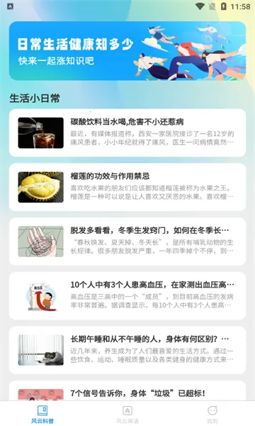 风云快刷是知识科普平台,免费提供多领域科普知识,含自然科学、医学健康等。有分享互动、个性化推荐。亮点有健康知识与英语短句。优势是免费阅读、内容多样、界面友好,还具及时更新等特点 。
