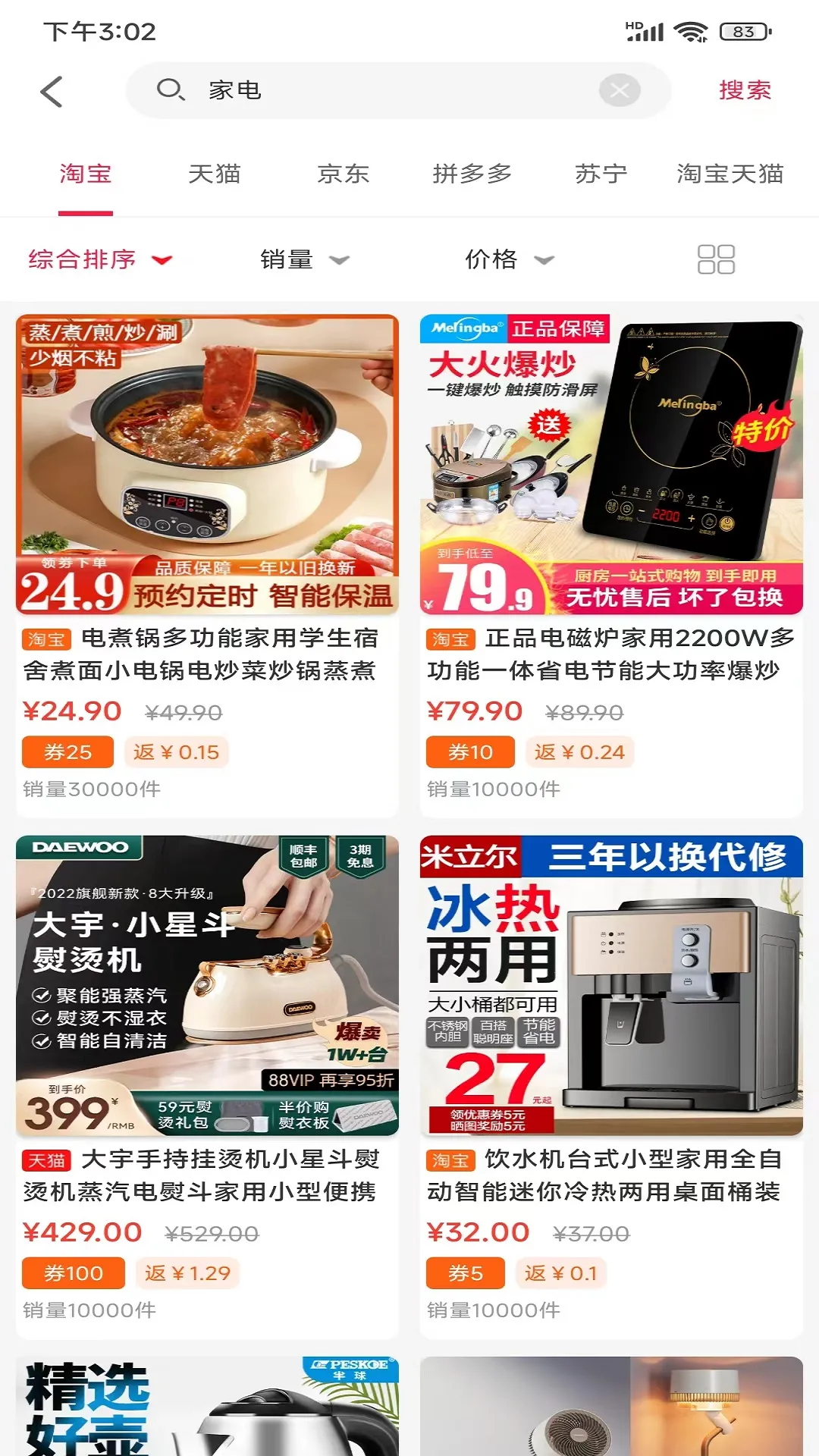 <1>商品丰富且实惠:涵盖女装、母婴、化妆品、美食等海量商品资源,来自淘宝、天猫、京东、拼多多等各大商城,价格比原有商城更便宜,能让用户极致购物、极致省钱。