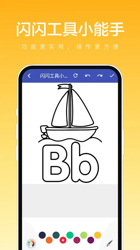 闪闪工具小能手2025官方最新版本是一款适合小朋友涂色绘画的手机软件。它专注为绘画涂色人群打造,有大量图案供填色。可随心创作,能按需求调整画布尺寸,支持分层绘制,还有丰富滤镜特效。作品能保存或分享。其亮点众多,界面简洁易懂,无专业基础也能上手;支持撤销重做,保证制作灵活性;提供绘画教程技巧;定期更新素材和功能。操作上轻松便捷,能让人毫无难度地享受绘画过程。