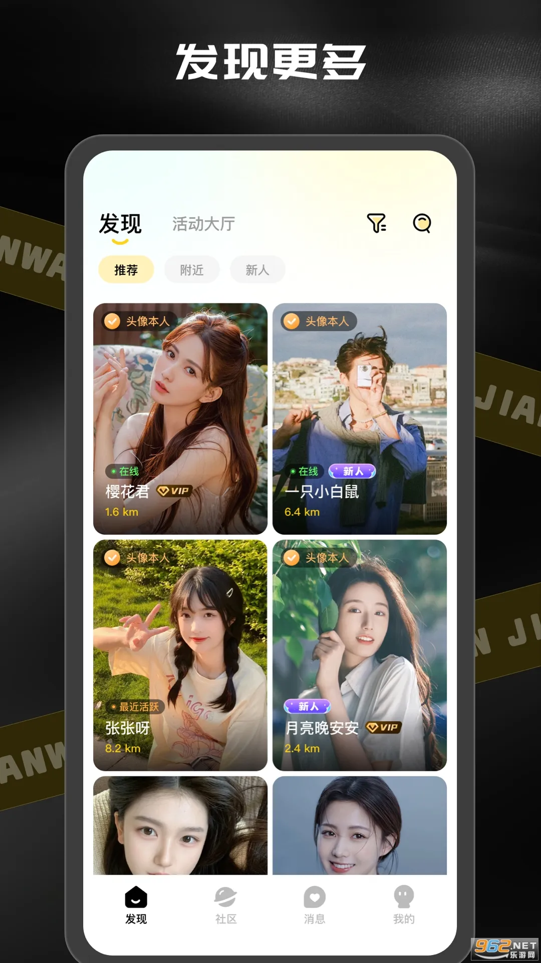 <2>安全社交环境:用户需身份核验,杜绝虚假账号,且支持附近的人功能快速匹配本地搭子。