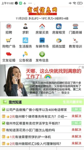 宿州信息网官方手机版自 2006 年创立,专为宿州居民打造。汇集招聘、租房等海量便民信息,功能丰富,涵盖生活各方面,信息实时更新,操作便捷,还有社交互动,是宿州人的综合生活平台 。