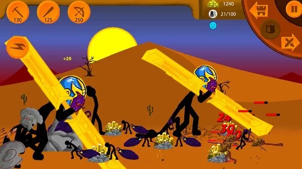 3、角色丰富,策略性强:火柴人可以成为矿工、剑士、矛士、弓箭手、巫师甚至巨人等多种职业,每种角色能力独特。玩家需根据不同情况合理搭配兵种,运用策略排兵布阵。