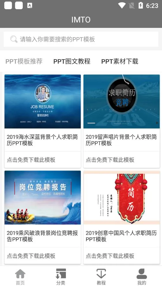 IMTO是一个不错的PPT模板库。它有海量模板,经过精选,适用于商务汇报、学习科研、文艺展示、节日祝福等各个场景。幻灯片库重装上阵,能让演示赢得更多喝彩。还有海量范文供挑选,解决演示难题。可自定义母版字体,满足个性化需求。这里能让用户快速掌握PPT技巧,有精选海量模板和实用干货分享,还有一对一经验技巧教程与办公软件入门课程。内容丰富,图文技巧、入门视频教程都有,全部模板和素材免费下且定期更新。使用方便,可搜索名称找PPT,智能推荐精品,还能一键下载自由编辑。