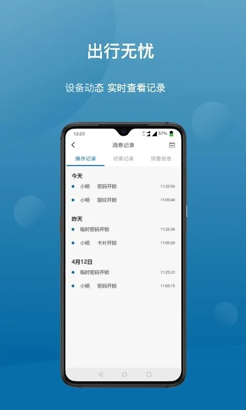 3、功能丰富:可使用 app 查询开门记录、门锁电量,还能远程授权他人、查看设备以及对门锁进行基本设置。能实现快速查看视频、密码分享,来访无需等待,还支持远程看家、远程对讲等。