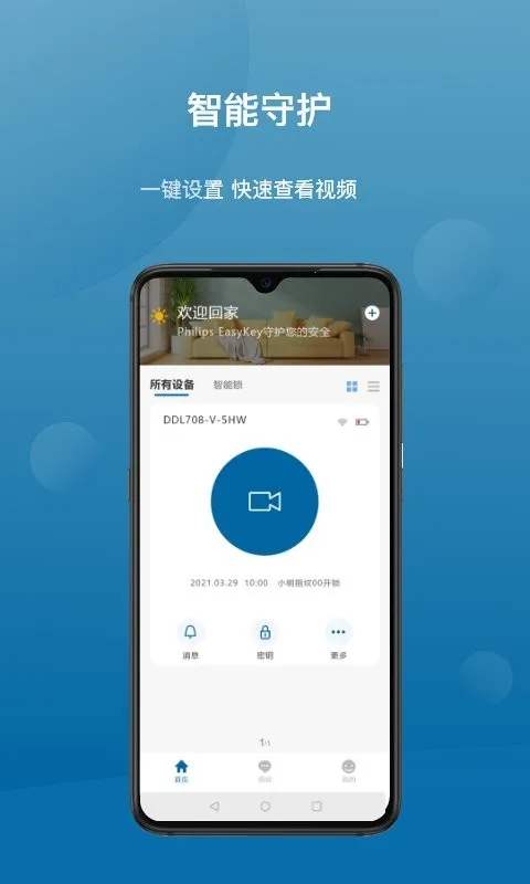 飞利浦Philips EasyKey Plus是智能家居控制管理平台,可在手机控制飞利浦智能锁,设置密钥、查看历史操作与房客记录,还能看监控、截屏录屏、语音对讲,遇异常有预警,支持多系列产品,功能实用。