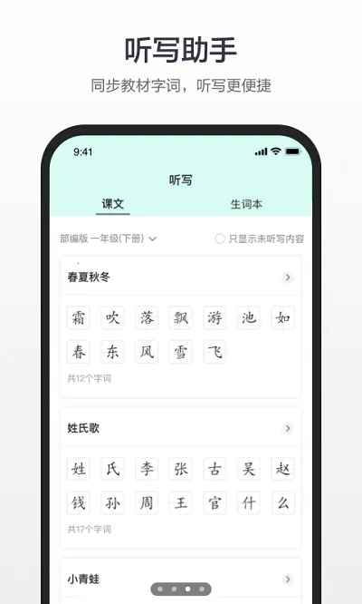 2、智能学习辅助:搭配文心大模型,结合查询过的汉字推送更多相关生僻字;有每日成语诗集精选、作文助手,能将学习素材一网打尽;内置问答、语音等人工智能技术,解决不识字、提笔忘字等烦恼。