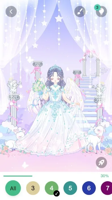2、简单易用:用户只需轻击几下,选择喜欢的图片,并按照数字填色,就能完成一幅大作,涂色完成后即时生成壁纸,还能完美适配手机和平板。