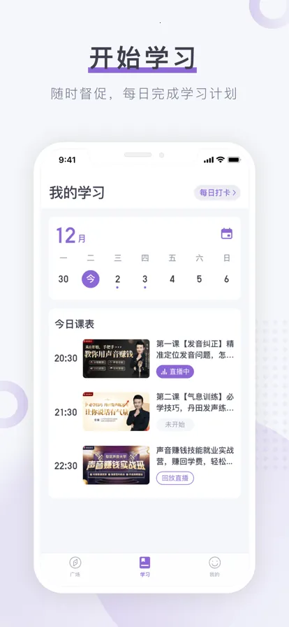 1、课程丰富优质:提供海量优质的公开课程和视频录播资源,课程类型多样,涵盖声音美化、声音变现等多方面内容,用户可灵活选择直播指导、视频课程回放等课程进行学习。