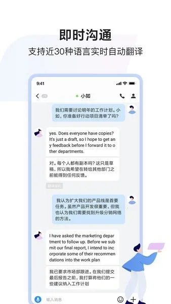 1、沟通高效:企业内同事不添加好友即可聊天,有回执消息功能,保证信息传递完整可追踪,减少信息漏读。群聊创建便捷、管理功能丰富,还能自动剔除离职员工保障信息安全。同时支持近三十种语言自动翻译,方便跨国沟通。