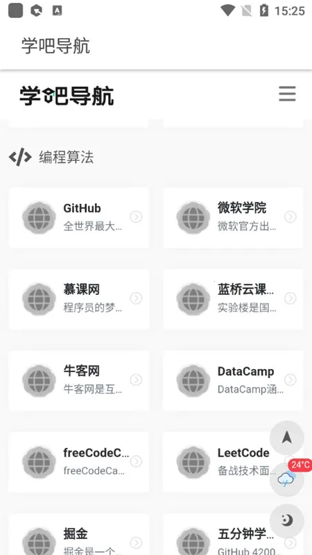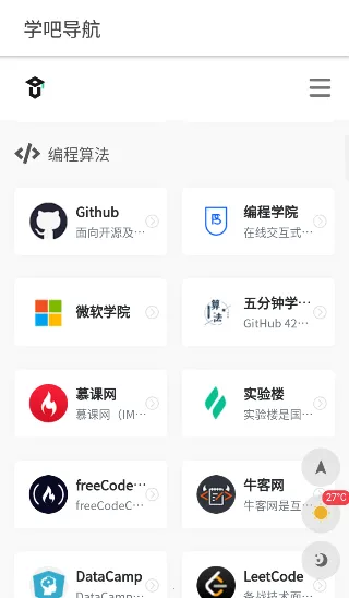 学吧导航是四十万学习爱好者都在用的导航类网站应用。它集合众多学习资源,以导航网站形式聚合热门网站,提供丰富教育学术资源与实用工具。覆盖领域广泛,有外语学习、编程算法、电脑办公、音乐艺术等。用户能在不同领域按需寻找资源,像在线课程、学术论文、电子书籍等都能获取。该应用收录上百个优质国内外学习网站,无需四处寻找。内容分类细致,有 10 余项分类。而且内存小,点击学习内容可直接跳转网站页面,能让用户便捷学习,掌握更多知识,助力学习进步。