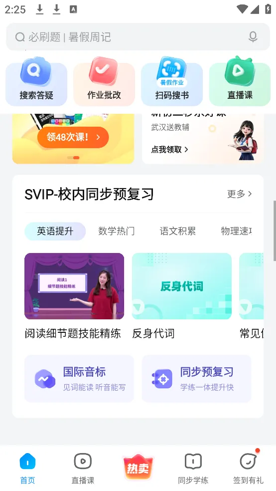 1、题库覆盖广:作业帮的题库覆盖全国小学、初中、高中教材和练习册 95%的题目,收录全国各省份从小学到高中课本、练习册、试卷等题目资源,从基本课后练习题到中高考真题均有涵盖,各科难题一网打尽。