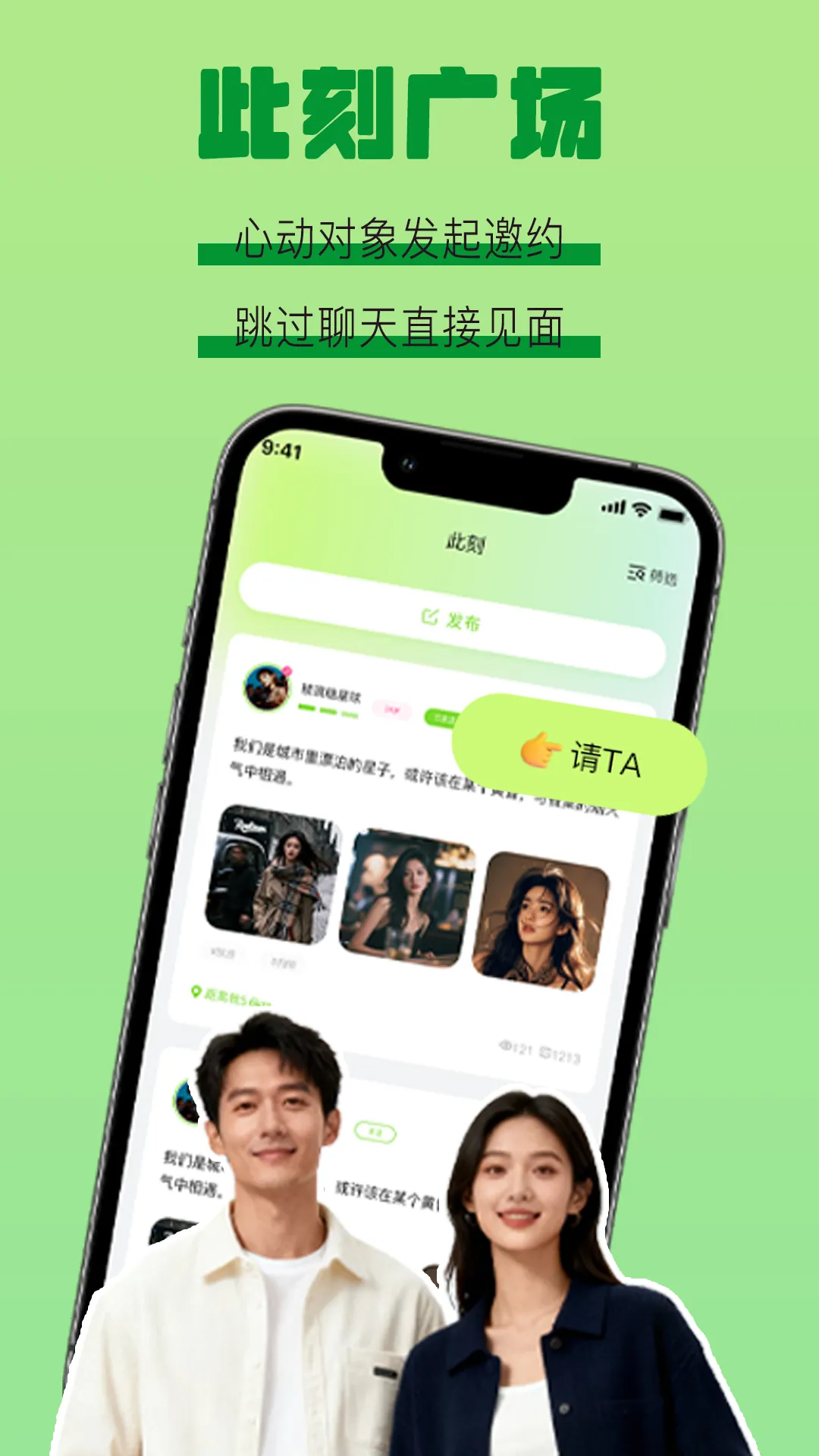 4、社交体验优质:跳过冗长网聊,直接发布当下需求找到同频对象;采用真人翻牌子模式,把选择权交还给用户,让用户基于真实资料快速决策。