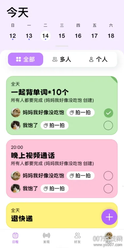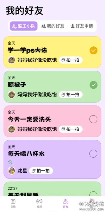 1、社交协作强:打破传统单机局限,将个人任务记录与好友协作监督深度融合,支持与好友组队管理任务,通过拍一拍提醒、留言互动同步进度,适配多种协作场景,平衡个人规划与群体监督需求,以他律促自律。