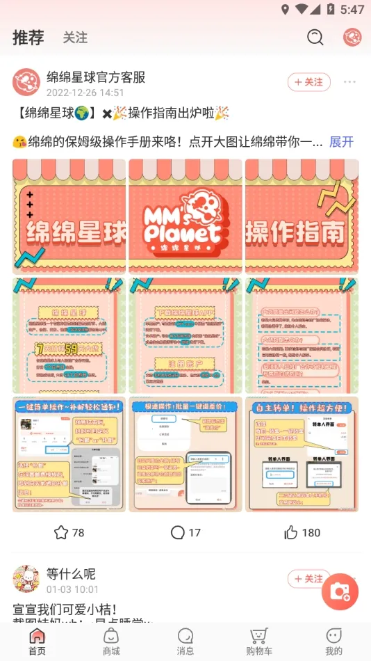 绵绵星球最新手机版是专为棉娃爱好者打造的平台,集购物与交流于一体。它汇聚丰富棉娃商品,支持个性化设计,能与厂家直接沟通。有蹲蹲群、进度追踪等功能,交易安全有保障,操作便捷,别错过。
