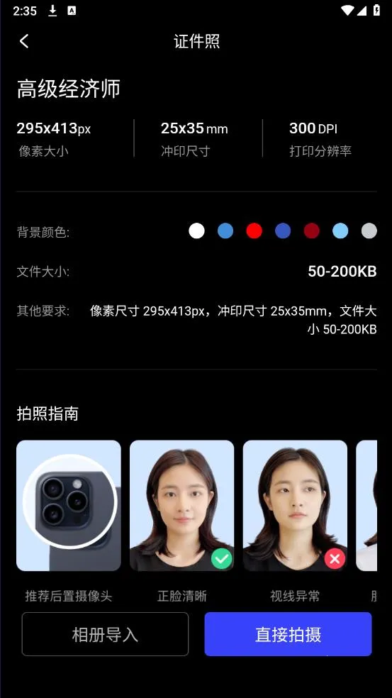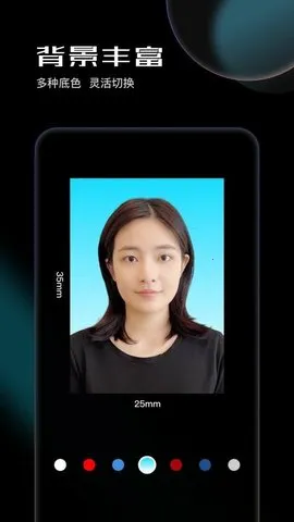 3、适配性强:丰富底色选择,覆盖主流及延伸色系;全场景尺寸模板,涵盖各类基础标准与专用尺寸,按场景分类方便查找;制作的证件照满足求职、考试、出国等多场景需求。