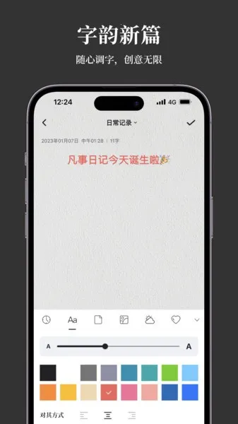 凡事日记是一款备受好评的手机日记应用。它界面采用简洁分栏布局与沉浸式输入环境,书写流畅自然。智能识别模块能分析文本情绪关键词,匹配相应字体样式与背景氛围,保持版式协调美观。时光轴浏览功能将日记按时间整合为可视化图谱,方便回顾过往记录。它还支持图文视频便捷记录,有多种记录方法,可自由搭配信纸主题。软件具备隐私保护功能,能锁定日记、设置密码。此外,它有每日提醒、心情记录等亮点,还能提供夜间阅读和护眼模式,内存小且无广告,满足用户功能与情感需求。