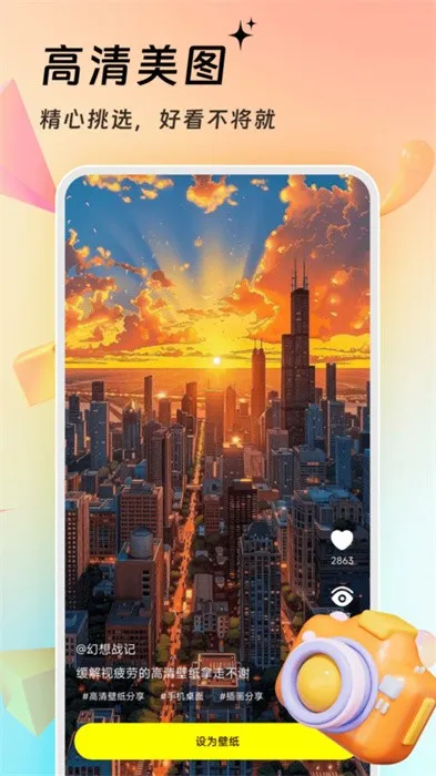 3、高清画质体验绝佳:壁纸资源涵盖2K、4K等高清分辨率,适配不同屏幕尺寸的手机,确保壁纸设置后清晰无模糊,细节呈现完整,提升视觉体验质感。