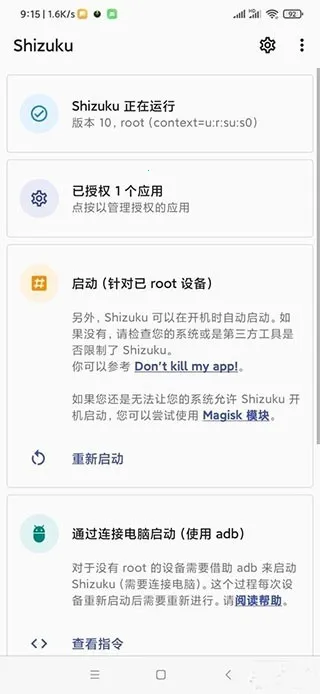 2、shizuku模式开启:按照提示下载安装格外软件shizuku,点击已授权N个应用