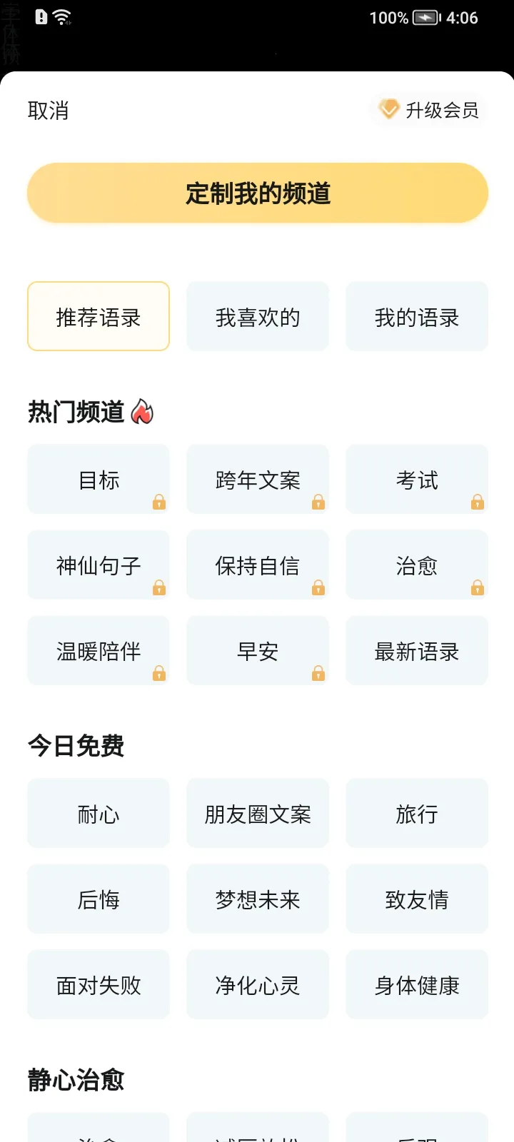 得言2025官方正版是厦门零一世界科技有限公司推出的正能量语录分享软件。系统每日推送精选语录,内容高频更新,有丰富主题。支持收藏、分享、设置提醒,还能制作壁纸,极简设计带来舒适阅读体验。