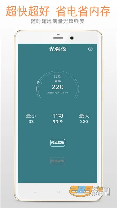 你是不是想知道光强达到多少算正常?那这款光强仪软件你可别错过。它能利用手机光线传感器进行光强测试,把手机变成专业感光仪器,实时数字化展示光照强度。它有实时和统计两种模式,实时模式能持续刷新当前光照强度,统计模式可记录时间段内光照数据,还能算出最大、最小峰值和平均值,通过趋势图报告让你清楚光线变化趋势。