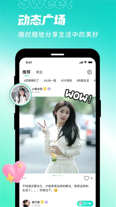 智能推荐精准匹配。基于地理位置和用户偏好,智能推荐附近的心动异性,还结合用户动态推荐有共同话题的潜在好友,增强匹配精准度。