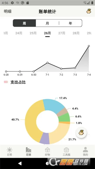 3、方便记录与查看:能记录宠物日常行为、开销等,还可通过多种图表直观查看,支持按不同周期查看单只或所有宠物账单,让养宠情况一目了然。
