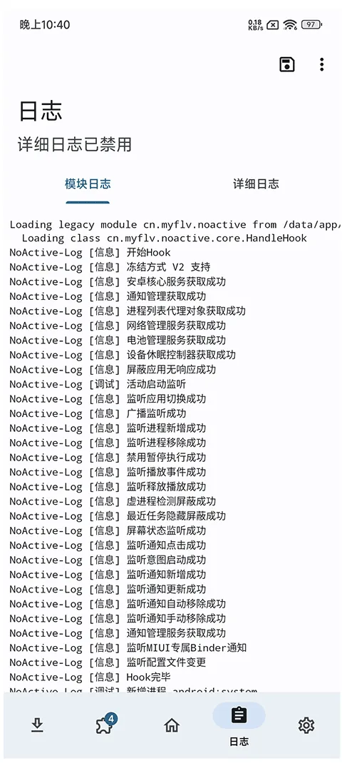 NoActive是基于XPosed框架的安卓系统优化工具,模拟IOS墓碑机制,可冻结后台应用,降低CPU占用与电量消耗,提升流畅度和续航。有多种冻结方式,支持白名单、黑名单管理,还能自定义冻结规则。