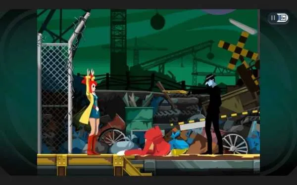 垃圾场中,我来回忙活,一会儿竖起栏杆,一会儿使物体掉落,延缓女子的死亡。之后,我操控各种机关,松开了吊塔上的铁球,砸晕了黑衣男,成功解救了红衣女。