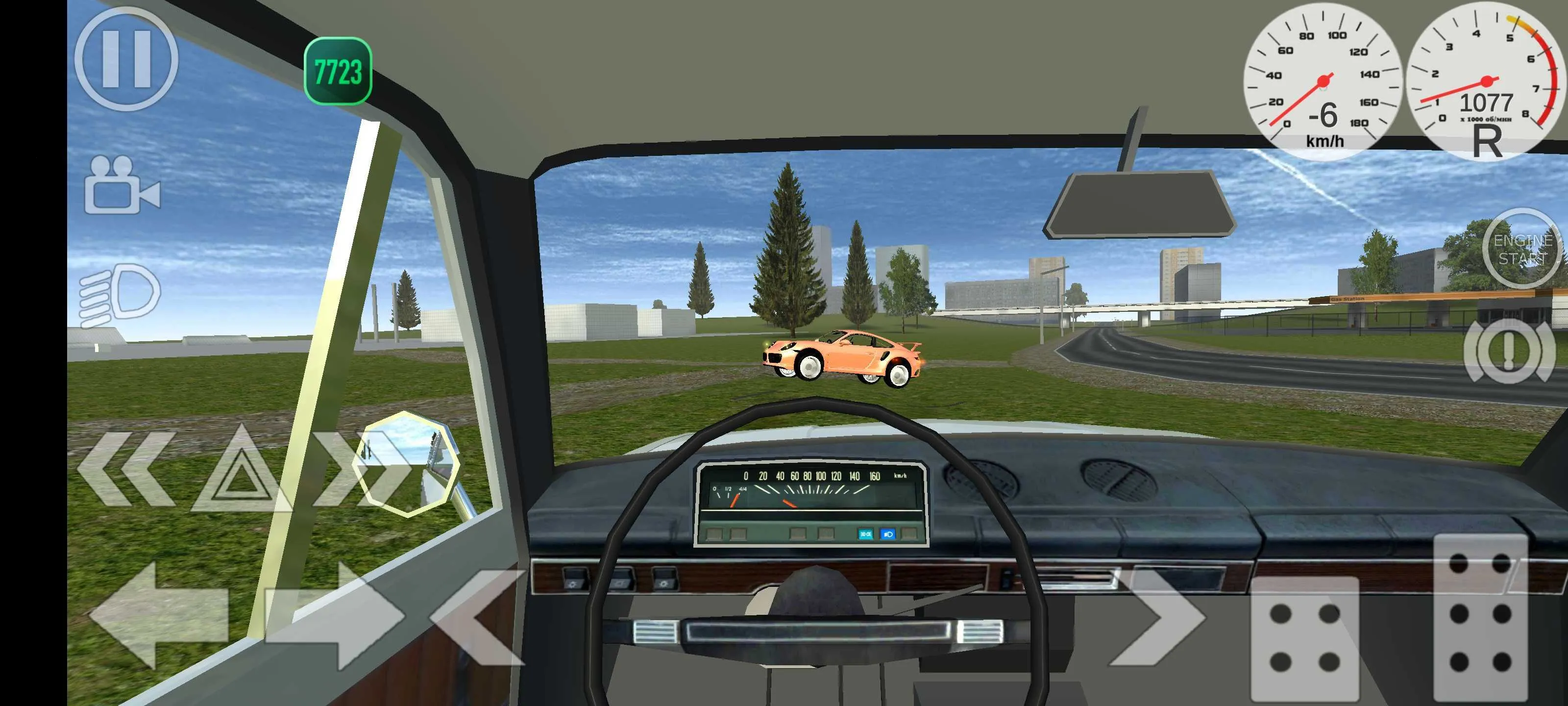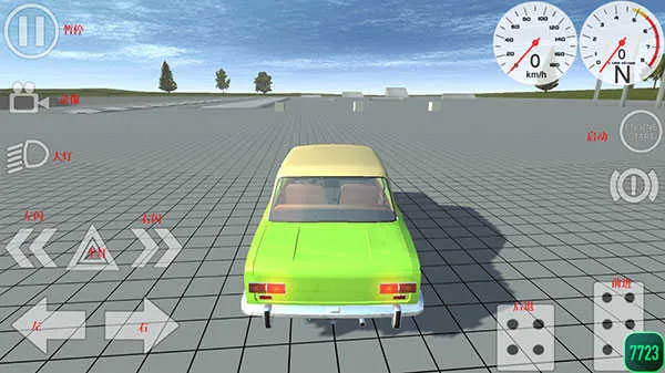 3、进入驾驶模式后,界面显示录像开关、大灯、转向灯及点火按钮等操作项。通过左下角虚拟摇杆控制方向,右下角设有【刹车】倒车与【油门】前进按键,精准调节车辆移动节奏。