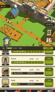 3. 独特的游戏体验:有着丰富的挑战内容,融合点击、放置、合成、养成等玩法,还有特色的像素画风,带来不一样的中世纪经营乐趣。
