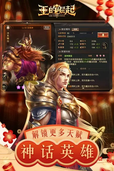 多样角色扮演元素:包含丰富多样的角色扮演元素,玩家可招募各具特色的英雄角色,他们不仅有强大个人能力,还能率领部队参与战斗,通过培养和装备升级提升战斗力。