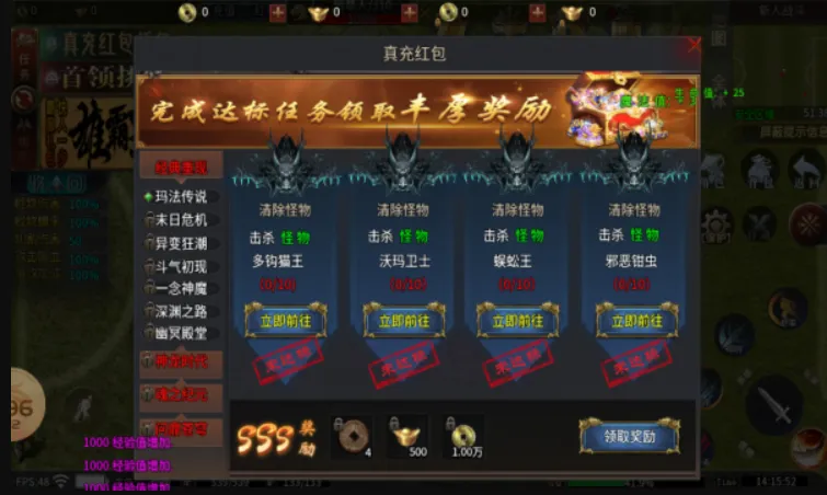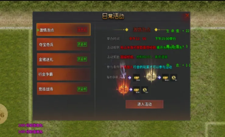 多样玩法超精彩:有皇城暴击多种任务副本可完成历练挑战,玛法皇城夺宝之旅热血开启,还有组队开黑、限时活动任务等多样玩法,满足不同玩家需求。