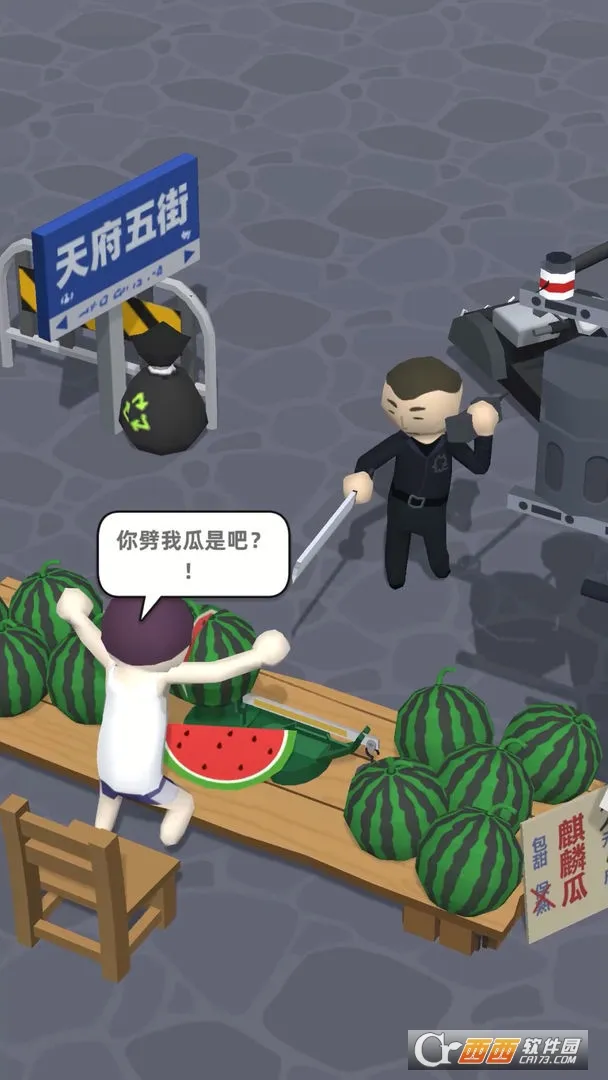 《西瓜摊主大战买瓜人安卓版》是一款趣味休闲益智游戏。**角色Q版**,有着经典的买瓜梗背景故事设定,让游戏趣味性十足。玩家能在卖瓜人和买瓜人两个角色中选择对战,买瓜人可呼叫兄弟砸摊。游戏玩法魔性,有独特剧情闯关模式,超多剧情令人爆笑。还能解锁专属瓜店老板皮肤,随意搭配多种阵容,自由选择丰富关卡挑战 。操作轻松,内存小,适合解闷,能让玩家在游戏里寻找到许多乐趣 。