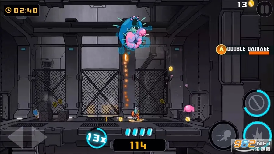 独特的射击体验:采用全新2D画面并融入中二幽默风格,带来别具一格的射击乐趣。射击方向固定向上,玩家需要把握时机,当怪物跳跃时,操控角色移动到其正下方进行有效攻击,这种独特设定考验玩家操作与策略。