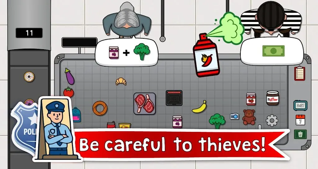 设有阻止小偷偷窃钱财等环节,增加游戏趣味性与挑战性,同时玩家能通过赚取收入购买升级,提升商店,玩法丰富多样。