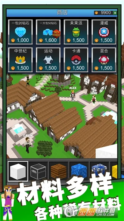 可自由探索制作与创造,结合不同元素和物品能制造出城市、城堡、火箭、植物等无数东西。