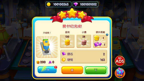 成功达成关卡目标后,系统将结算金币、钻石与星级评价,并发放额外奖励。表现越出色,解锁新餐厅、新厨具与新菜谱的速度越快。