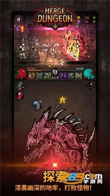 游戏玩法丰富多样。玩家能从战士、猎人、魔法师三个职业中选择,升级解锁丰富特殊能力和技能提升实力。通过拖拽相同道具重叠合成高级道具,新道具能力值随机决定。收集掠夺有随机能力值的装备,合理运用道具战胜怪物。探索漆黑地牢,应对突发事件,合成星星还有意外惊喜。