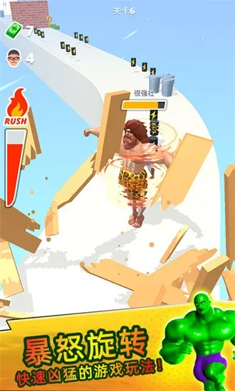 角色设计精彩:角色设计充满戏剧张力,奔跑的肌肉男造型带来强烈的视觉冲击,并且会形成极强的代入感和沉浸感,跑酷过程中反馈生动。