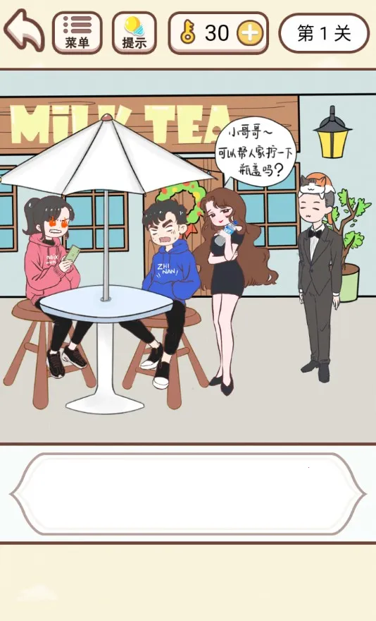 想知道如何应对老婆的小脾气,让恋爱生活更甜蜜吗?《我老婆超凶》这款游戏就能帮到你!它是一款超有趣的恋爱烧脑游戏,以情侣间的搞笑日常为背景。在游戏里,你将扮演男主,面对各种因小事惹老婆生气的状况。这里有超多烧脑关卡等你挑战,比如得拿到大姐姐手中矿泉水给服务生,拿到桌面钞票给服务生等。通过这些关卡,帮男主化解危机,减少挨打。游戏特色满满,有丰富场景故事、趣味挑战内容,脑力对战和解谜完美融合。玩法就是帮男主在各种意外场景中做出正确选择,降低老婆怒气。还有多种道具助力,不同选择会有多样结果。在这里,你能体验恋爱乐趣,感受情侣间的甜蜜与小摩擦,轻松应对恋爱中的小难题,让恋爱生活更加和谐美满!快来试试吧!