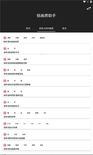铭画质助手安卓版是提供游戏画质优化的平台,能改善视觉体验,图像更清晰流畅。可按需选优化方案,操作简单,功能强大,能调分辨率等,免费使用,还具备图像质量、性能优化等特色功能。