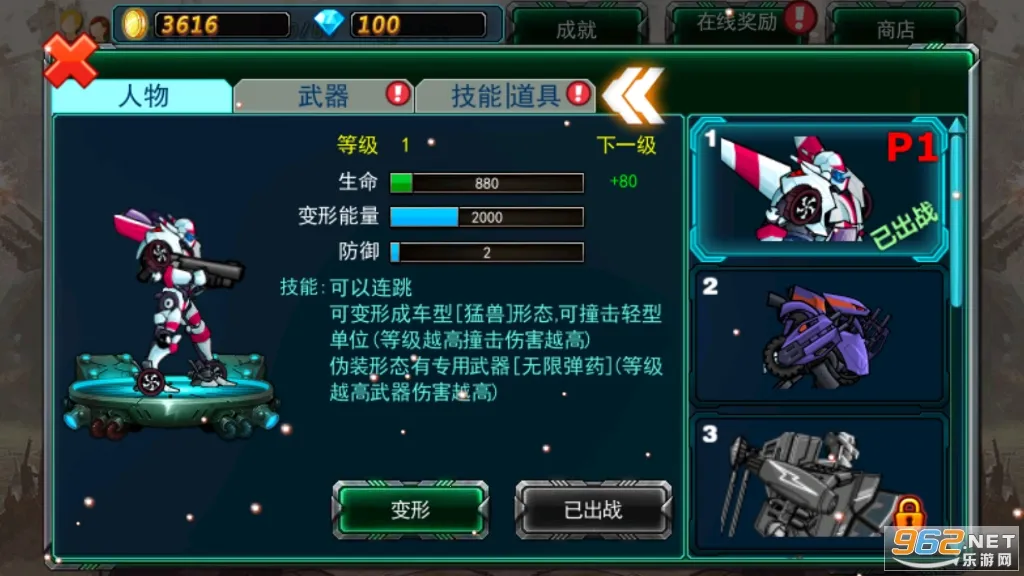 机甲变形炫酷,为游戏增添了独特魅力,每个机甲英雄都有不同特色。