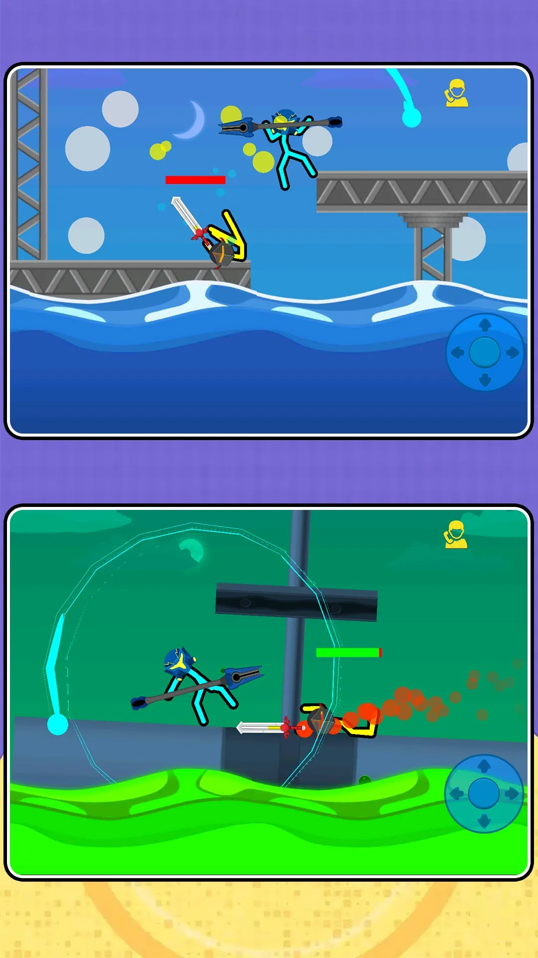 战斗中灵活操控火柴人,用合适武器攻击躲避,提升战斗技巧。